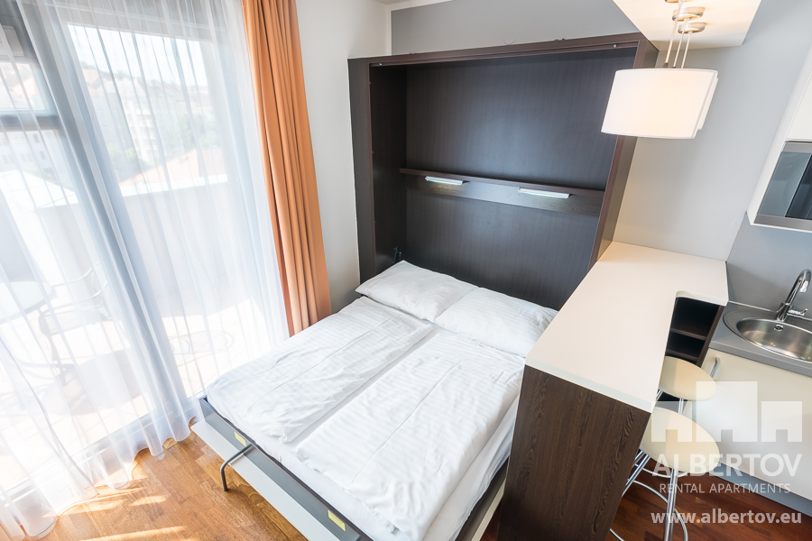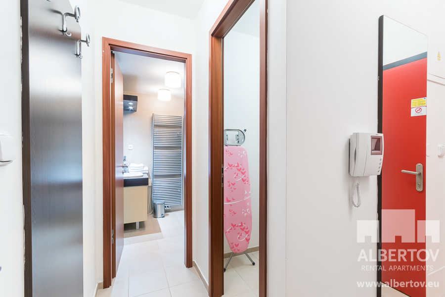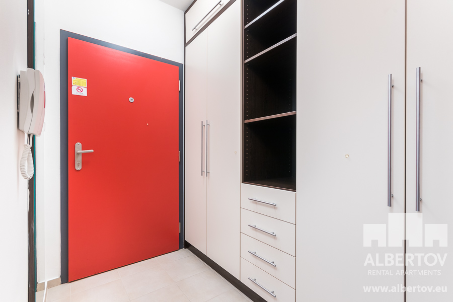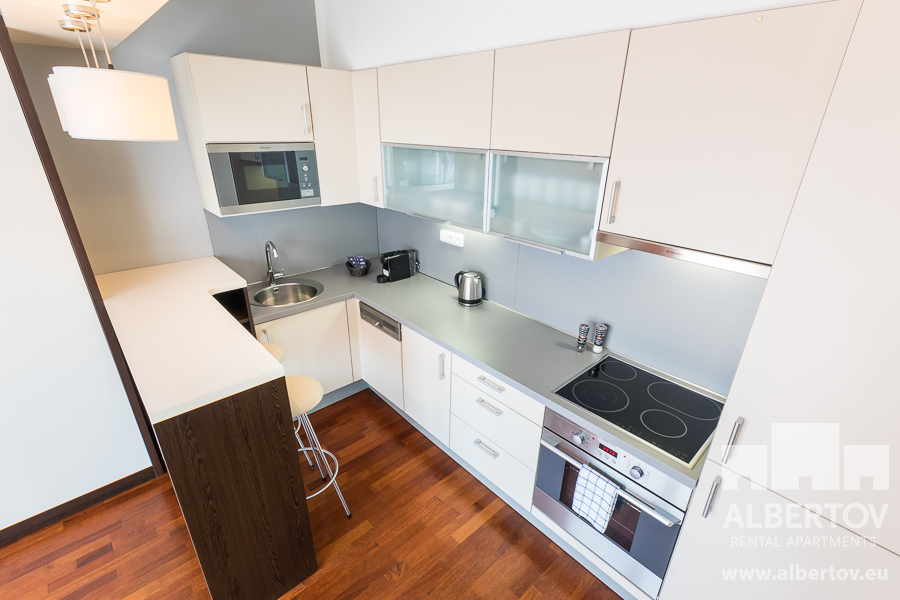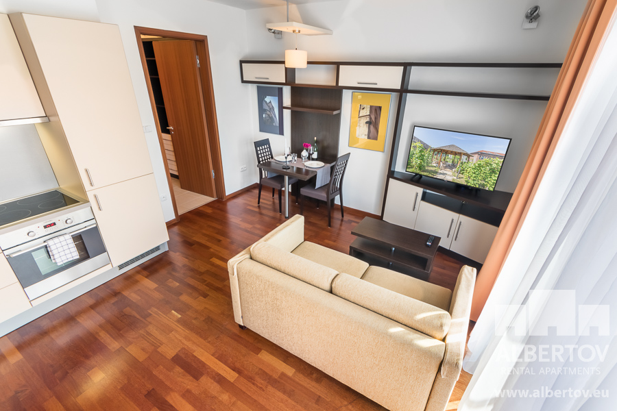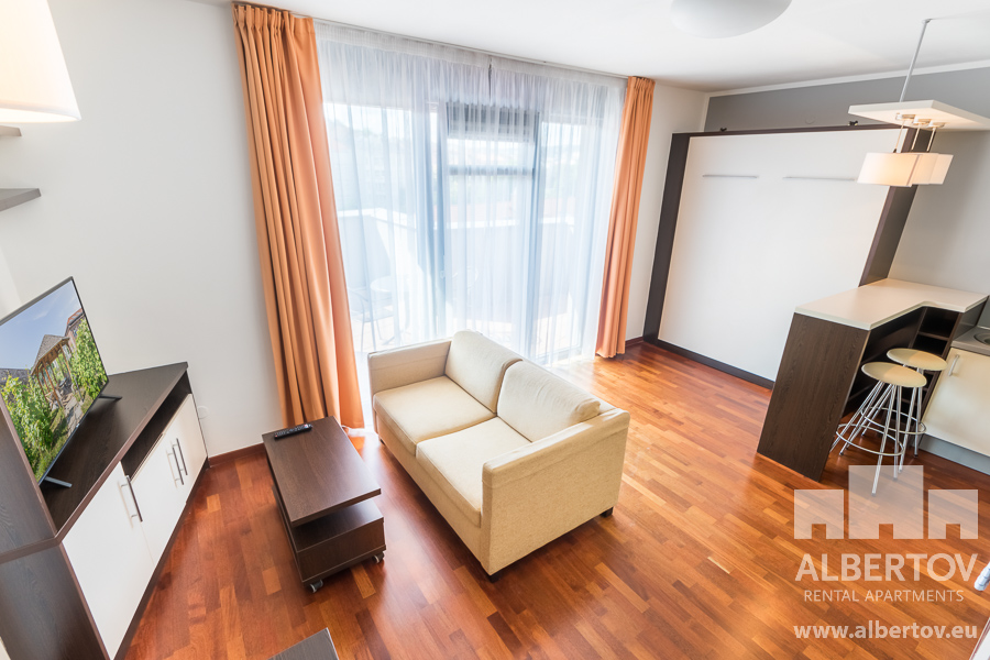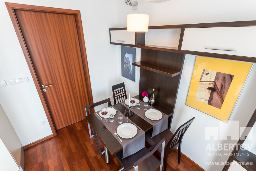 Damit das Wohnen für Sie angenehm ist, ist die ganze Wohnung modern mit Designmöbeln, mit bequemen Hockern und Lehnstühlen, eingerichtet. Im Zimmer gibt es Holzboden mit Heizung und hochwertige Holzfenster, Sie werden sich so gemütlich und warm fühlen! Zur Unterhaltung sorgt der Fernseher mit Satellit mit Hunderten von tschechischen und ausländischen Fernsehkanälen und ein schneller WiFi-Internetanschluss.