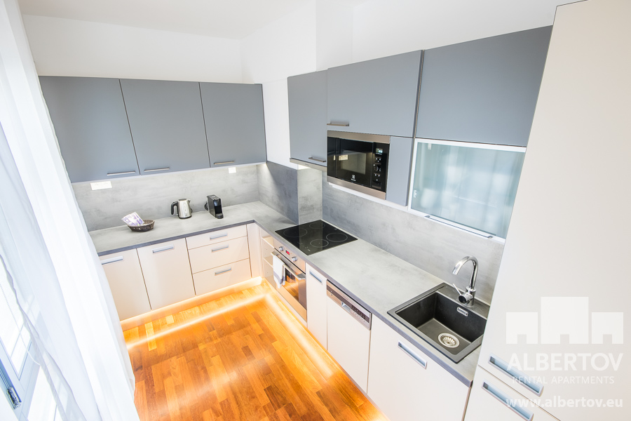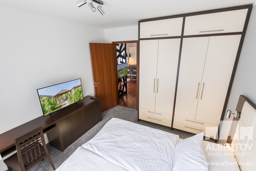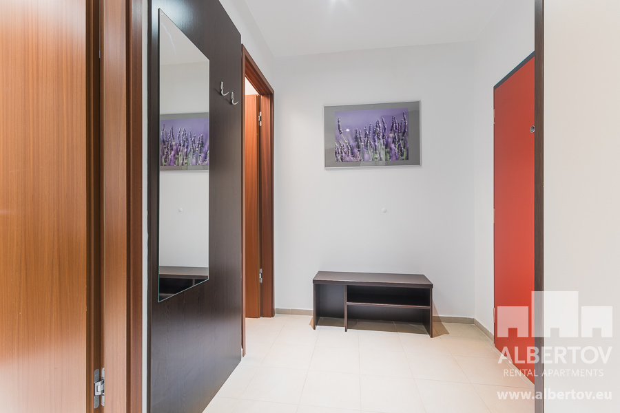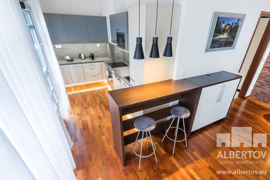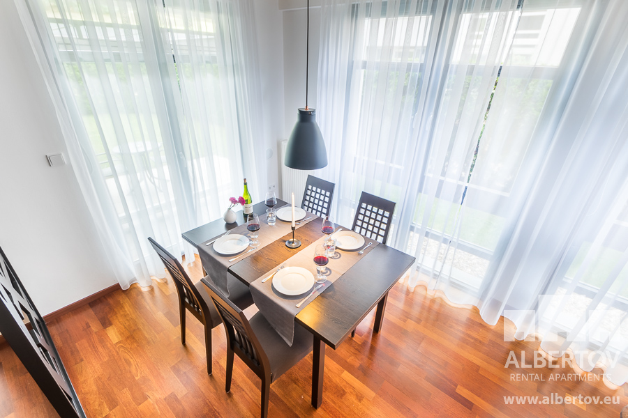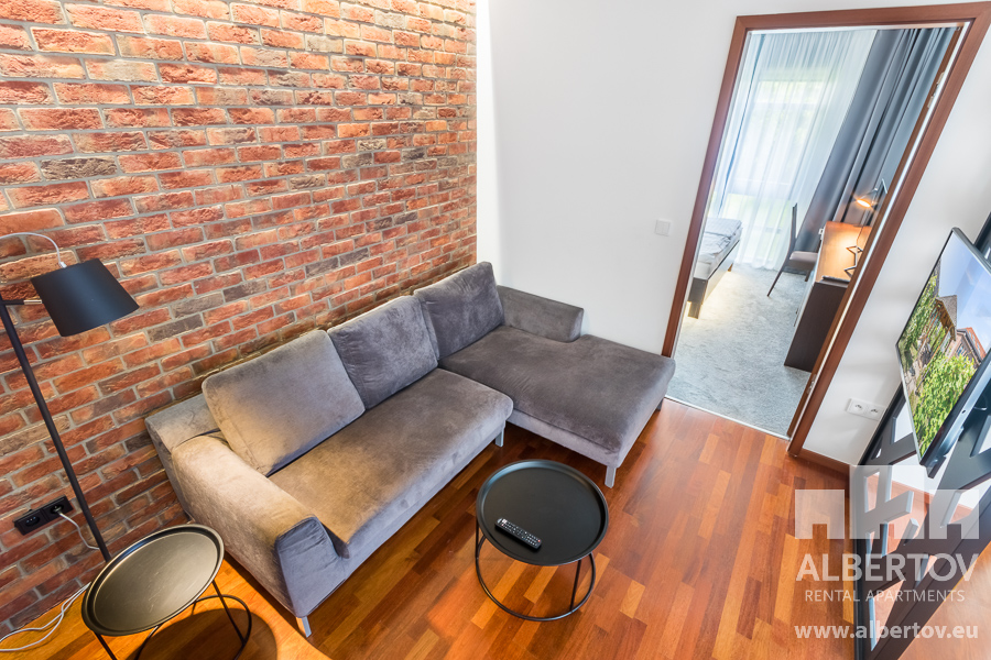 Damit das Wohnen für Sie angenehm ist, ist die ganze Wohnung modern mit Designmöbeln, mit bequemen Hockern und Lehnstühlen, eingerichtet. Im Zimmer gibt es Holzboden mit Heizung und hochwertige Holzfenster, Sie werden sich so gemütlich und warm fühlen! Zur Unterhaltung sorgt der Fernseher mit Satellit mit Hunderten von tschechischen und ausländischen Fernsehkanälen und ein schneller WiFi-Internetanschluss.