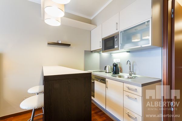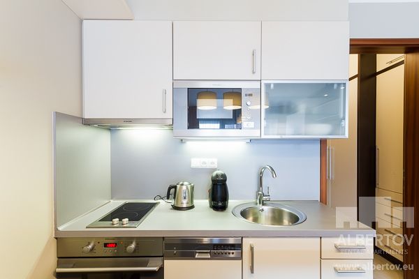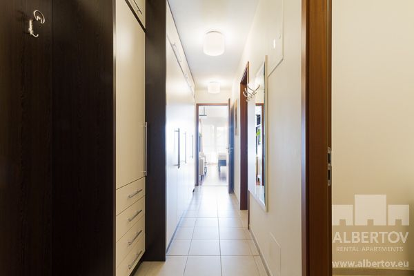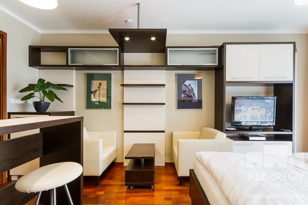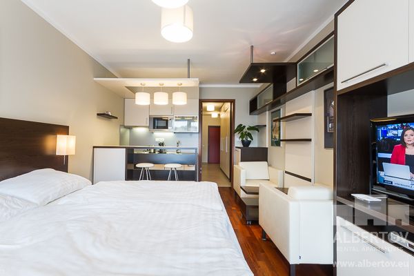 Damit das Wohnen für Sie angenehm ist, ist die ganze Wohnung modern mit Designmöbeln, mit bequemen Hockern und Lehnstühlen, eingerichtet. Im Zimmer gibt es Holzboden mit Heizung und hochwertige Holzfenster, Sie werden sich so gemütlich und warm fühlen! Zur Unterhaltung sorgt der Fernseher mit Satellit mit Hunderten von tschechischen und ausländischen Fernsehkanälen und ein schneller WiFi-Internetanschluss.